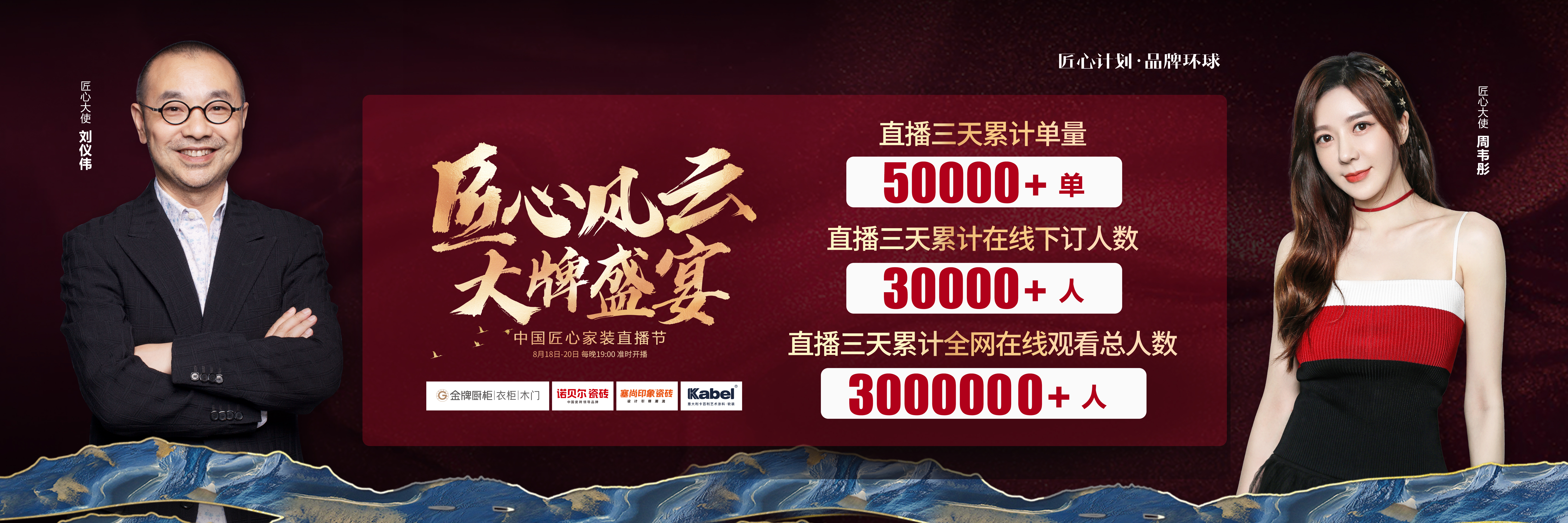 由金沙9001cc厨柜、诺贝尔瓷砖、塞尚印象瓷砖、卡百利艺术涂料联合缔造,创赢科技系统支持全案营销执行的“匠心风云 大牌盛宴”中国匠心家装直播节于8月20日圆满落...